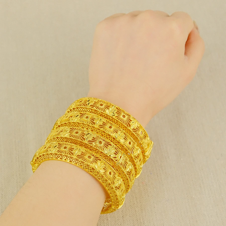 1/4Pcs Dubai 24K Gold Color Bracelets For Women Luxury Jewelry Designers Indian Bangles African Arabic Wholesale Wedding Bridal